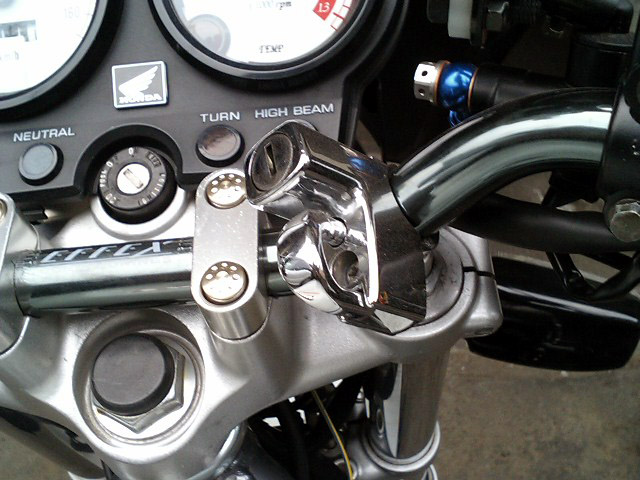 | ハンドル (DIY) | 新 Effex イージーフィットバーCB400SF用(ローポジ) 購入するなら(^。^) VTR250のノーマルとほぼ同じハンドルポジションになります。 本物のVTRノーマルハンドルはすでに捨ててしまっていましたが、CB用イージーフィットバーがVTRのノーマルとほぼ同じサイズでしたので転用しました。ノーマルと同じサイズで軽量化&ガンメタ色になるのでカスタム的でいいですね。 旧3 ハーディーミドル 購入するなら(^。^) う〜が乗っていた頃、「低くしたい」と言い出したのでコレに変更。(^^ 旧2 ハリケーン ヨーロピアン3型 購入するなら(^。^) 下の旧型ではハンドルアップスペーサーのせいで剛性感が無かったので変更。両端を25mmずつぶった切り、グリップもショートタイプにしました。 旧1 ハーディー ミドル&ハンドルアップスペーサー かなりアップ(約5cm)&バック(約3cm)にしてます。これもハンドル幅を金ノコでぶった切ったりしてなかり苦労してう〜に合わせました。ハンドルがジュラルミン製だったので、金ノコは辛かった。。。(><) 購入するなら(^。^) |